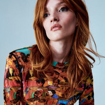 Jean Paul Gaultier Fall Winter 1997 collection Printed mesh turtleneck top Long sleeve Portrait print...